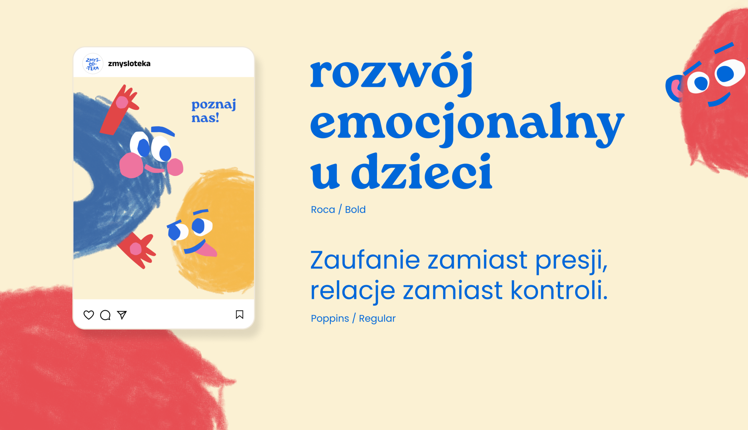 Zaprojektowanie identyfikacji dla nowo powstającej przestrzeni edukacyjnej. Powstały język wizualny ma budować zaufanie rodziców poszukujących nowoczesnego podejścia opartego na relacji, rozwoju i nauce przez zmysły.
